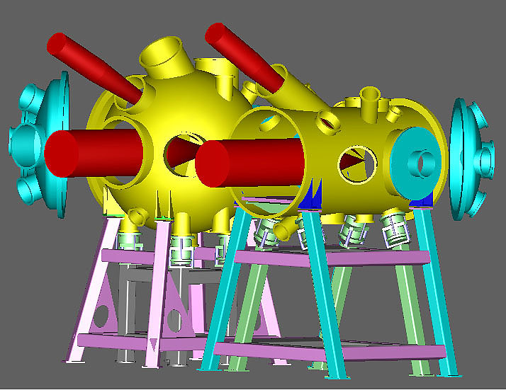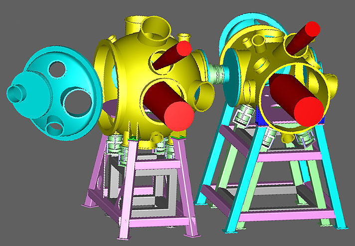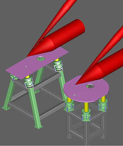 V obou komorách jsou interní fokusační optika, mikrometrické posuvné stolky nesoucí terčík, jakož i veškerá další optická zařízení montována na optických lavicích, jež jsou připevněny přímo k podlaze haly a od stěn komory mechanicky odděleny speciálním vlnovcovým systémem. Tím je zajištěna dokonalá stabilita vnitřních optických systémů obou komor, neboť deformace pláště komory při jejím napouštění a čerpání se na optické lavice nemohou přenést.